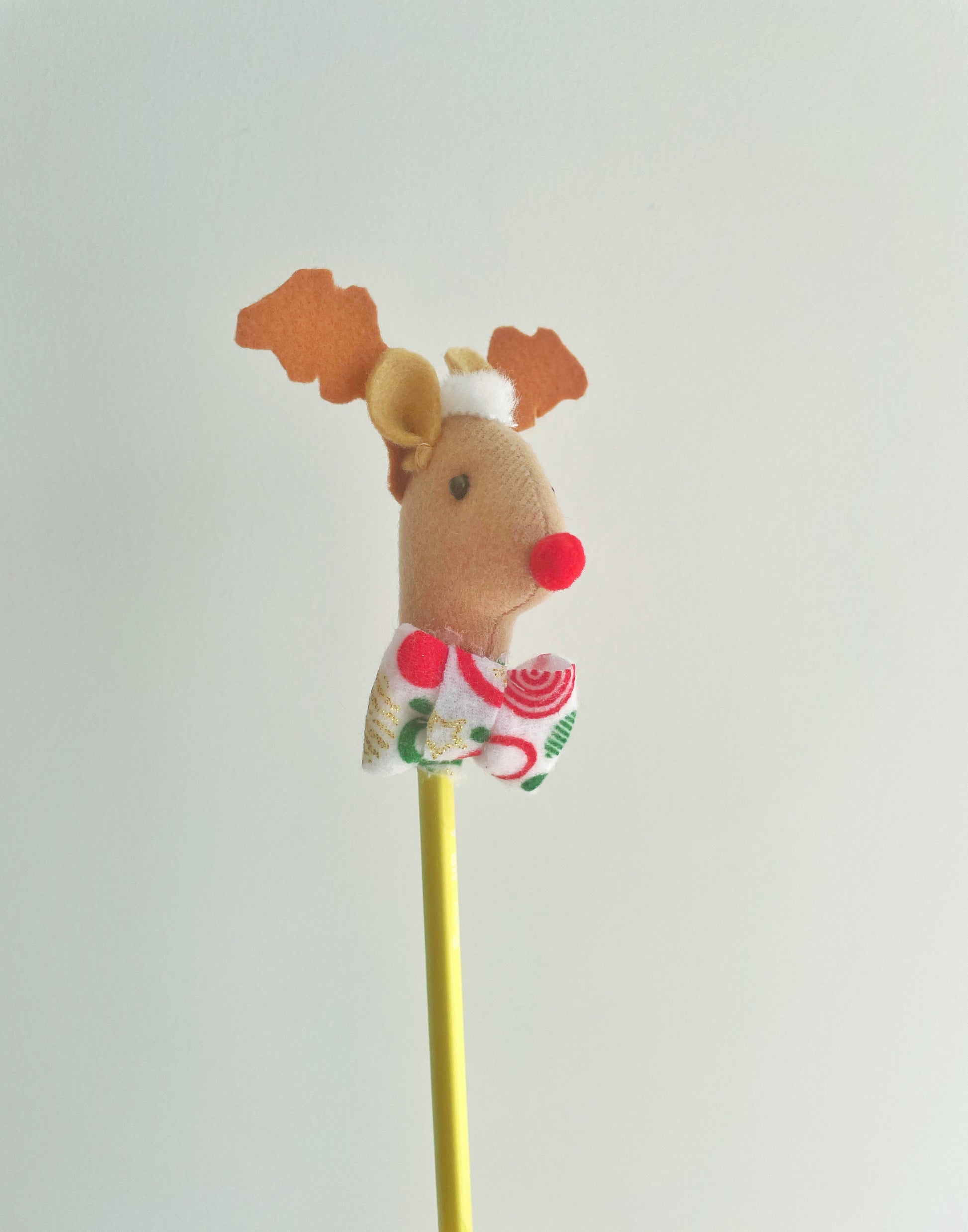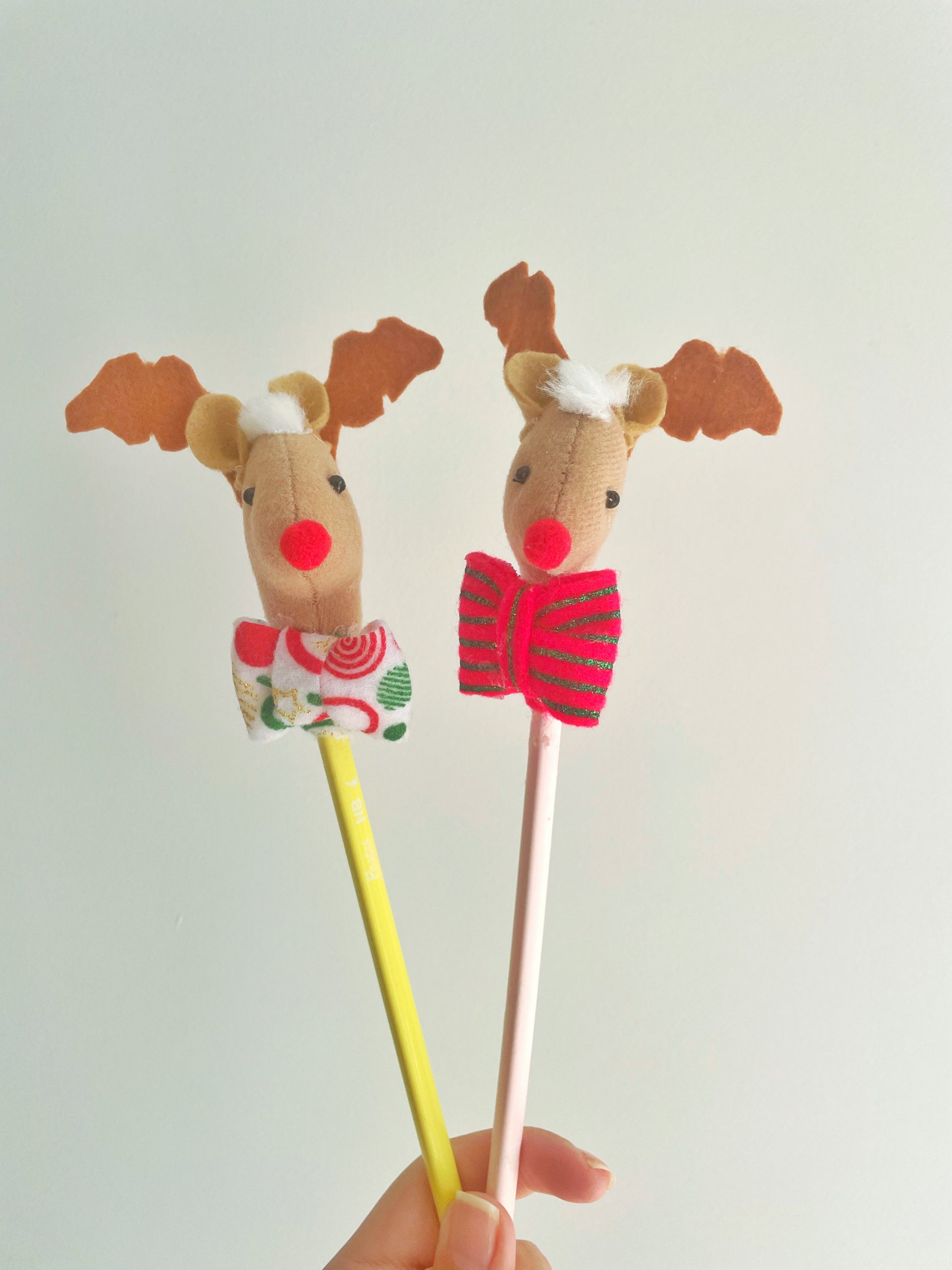 Este lápiz decorado con un amigable reno, ideal para regalos individuales o recuerdos especiales en eventos.